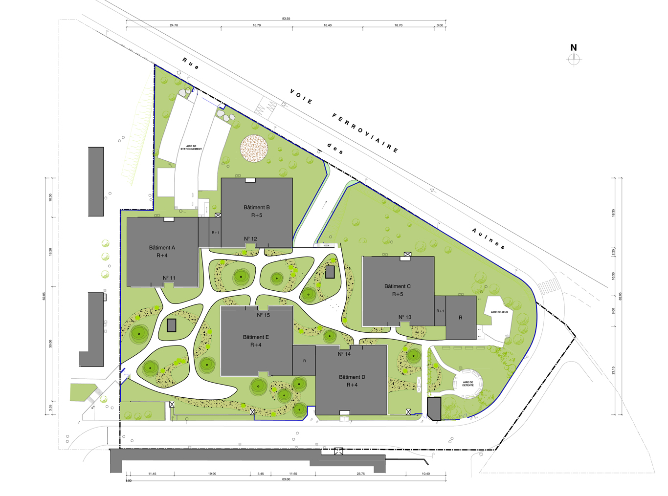 Ce projet d’aménagement paysager s’appuie sur l’observation : sa composition repose sur le tissage des flux des usagers allant et venant des immeubles, traversant la parcelle.